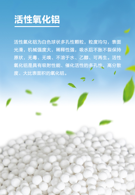 活性氧化鋁活性氧化鋁為白色球狀多孔性顆粒,粒度均勻,表面光滑,機(jī)械強(qiáng)度大,稀釋性強(qiáng),吸水后不脹不裂保持原狀,無(wú)毒、無(wú)嗅、不溶于水、乙醇、可再