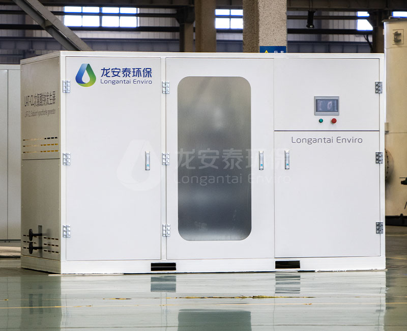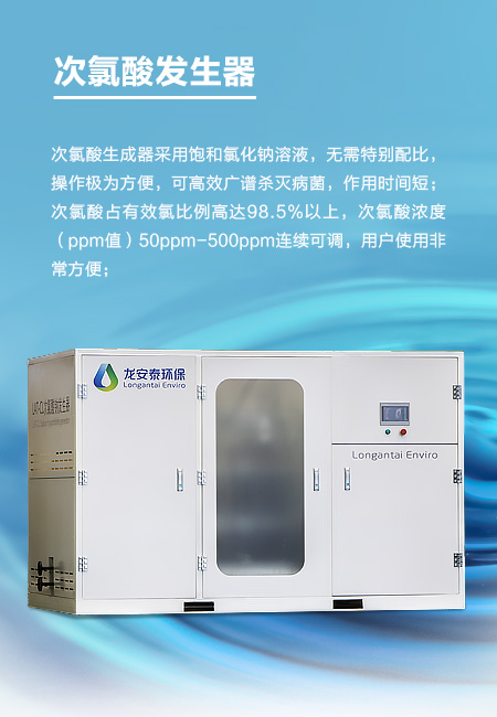 是一種新型的用于在線生產(chǎn)次氯酸鈉溶液的設(shè)備。適用于各種需要采用次氯酸鈉進(jìn)行消毒的場(chǎng)合。其工作原理是:氯化鈉溶液在一定的槽電壓作用下,在電解槽